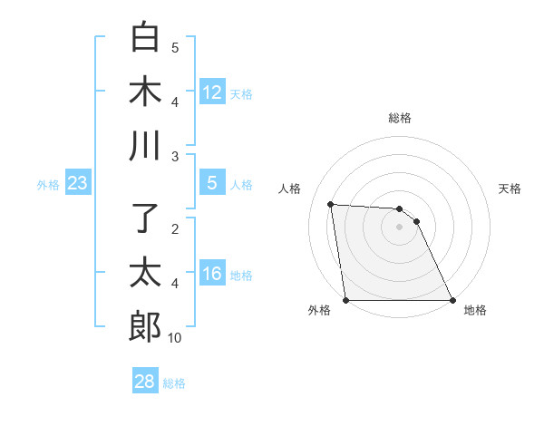 白木川 了太郞さんを姓名の画数から五運を鑑定