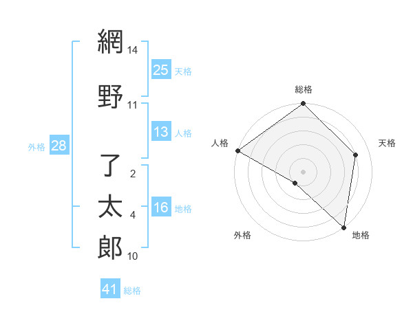 網野 了太郞さんを姓名の画数から五運を鑑定
