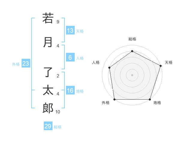若月 了太郞さんを姓名の画数から五運を鑑定