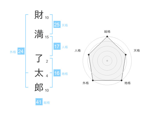 財満 了太郞さんを姓名の画数から五運を鑑定
