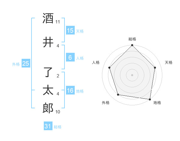 酒井 了太郞さんの総格は31画の5点!