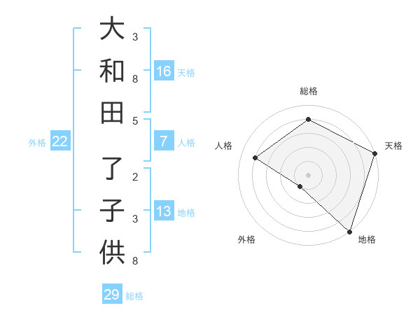 大和田 了子供さんを姓名の画数から五運を鑑定