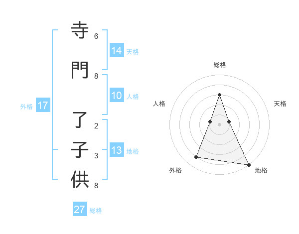寺門 了子供さんを姓名の画数から五運を鑑定