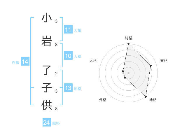 小岩 了子供さんを姓名の画数から五運を鑑定