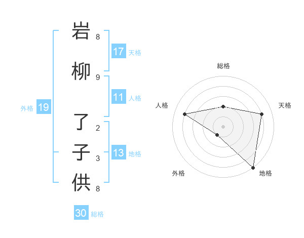 岩柳 了子供さんの総格は30画の2点!
