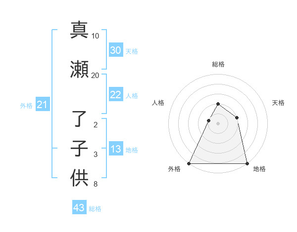 真瀬 了子供さんの地格は13画の5点!