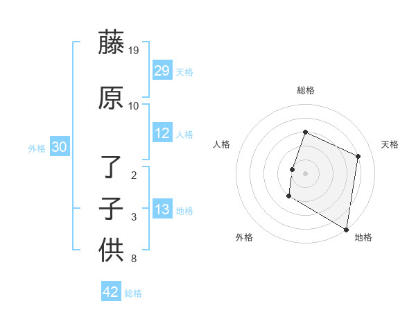 藤原 了子供さんの天格は29画の4点!