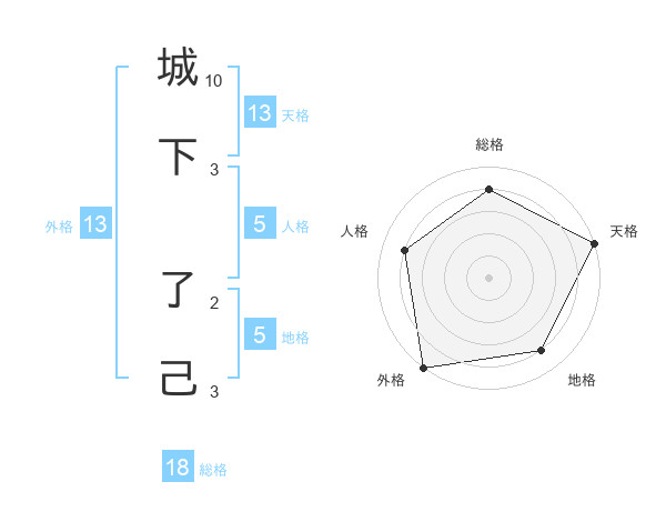 城下 了己さんの天格は13画の5点