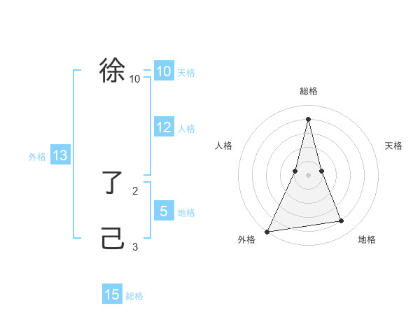 徐 了己さんの総格は15画の4点!