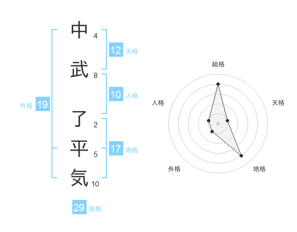 中武 了平気さんの外格は19画の1点!