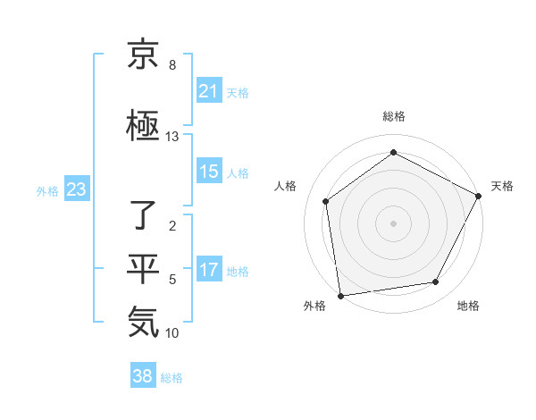 京極 了平気さんの総格は38画の4点!