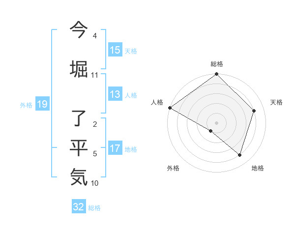 今堀 了平気さんを姓名の画数から五運を鑑定