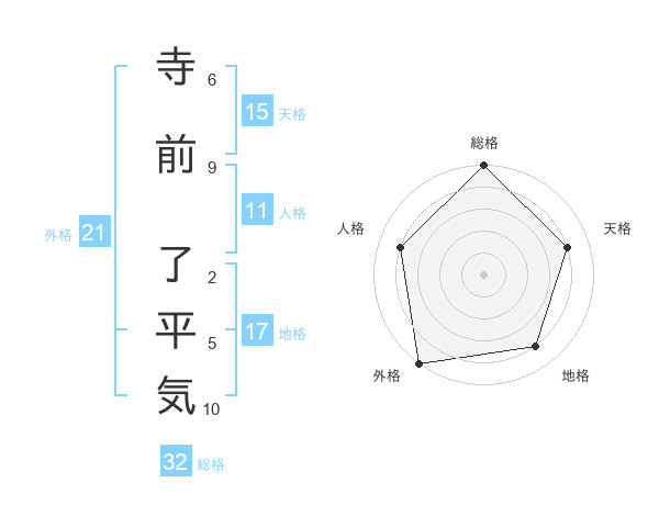寺前 了平気さんの外格は21画の5点!