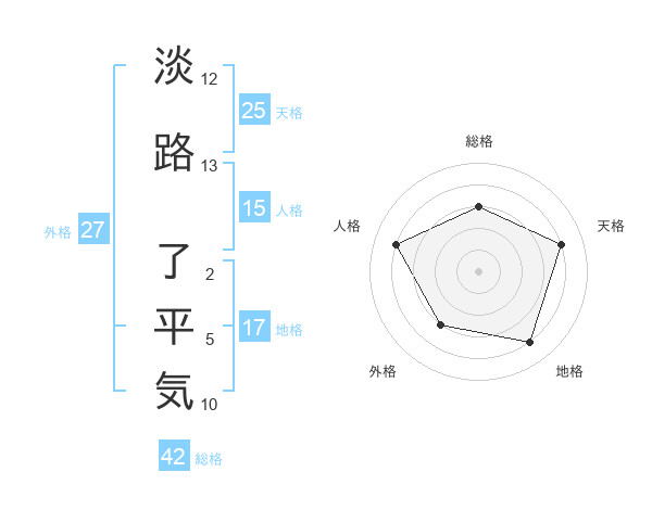 淡路 了平気さんを姓名の画数から五運を鑑定