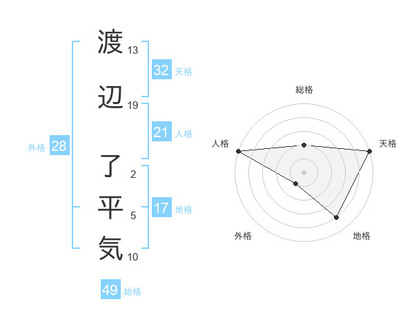 渡辺 了平気さんの地格は17画の4点!
