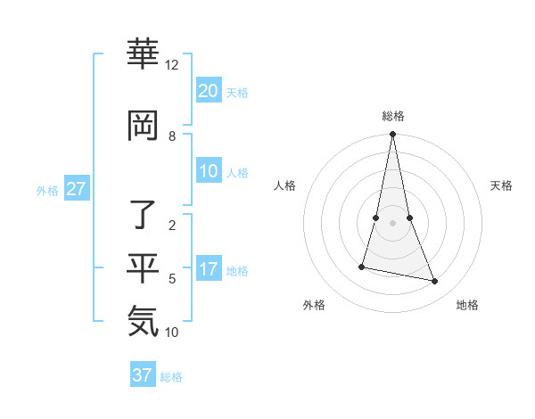 華岡 了平気さんの総格は37画の5点!