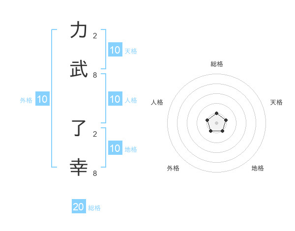 力武 了幸さんの総格は20画の1点!