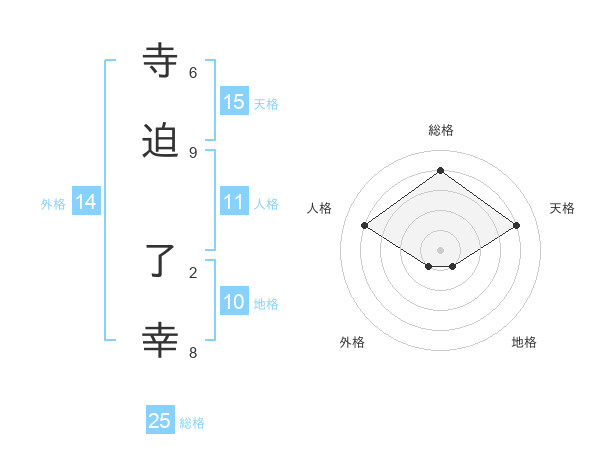 寺迫 了幸さんの総格は25画の4点!