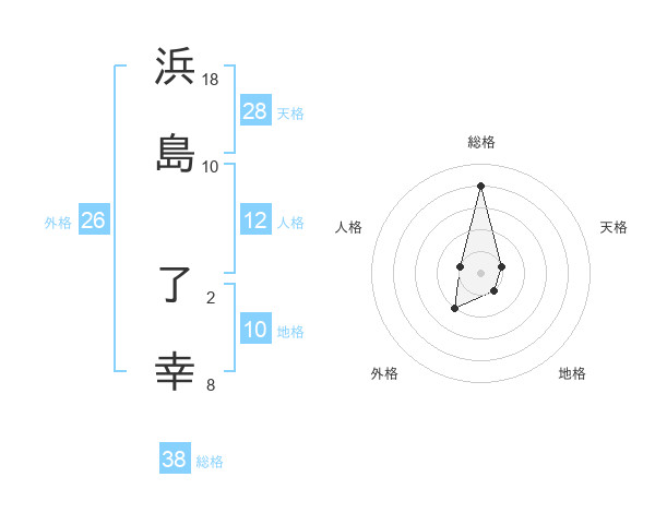 浜島 了幸さんを姓名の画数から五運を鑑定