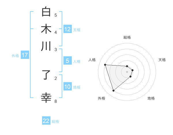 白木川 了幸さんを姓名の画数から五運を鑑定