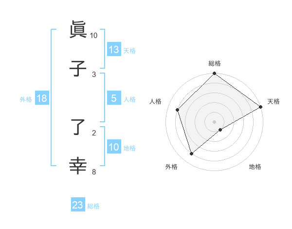眞子 了幸さんの天格は13画の5点!