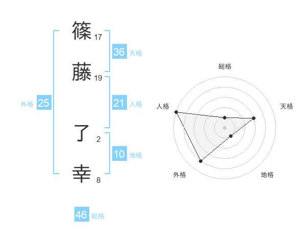 篠藤 了幸さんを姓名の画数から五運を鑑定