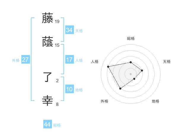 藤蔭 了幸さんを姓名の画数から五運を鑑定