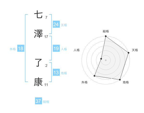 七澤 了康さんの天格は24画の5点!