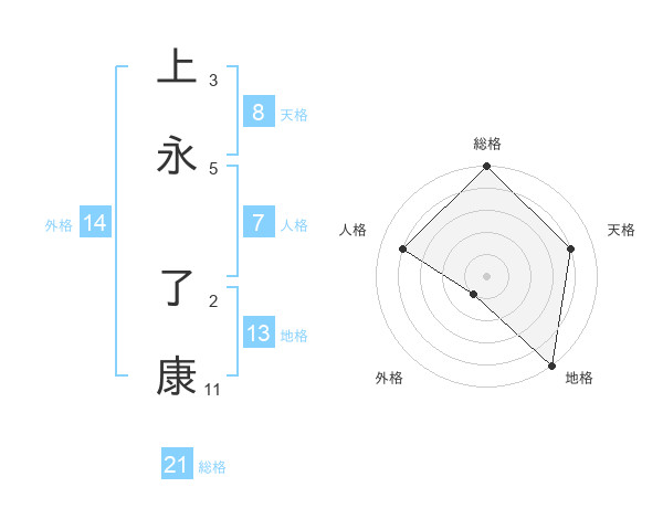 上永 了康さんの総格は21画の5点!
