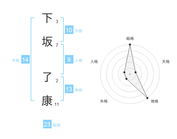 下坂 了康さんの総格は23画の5点!
