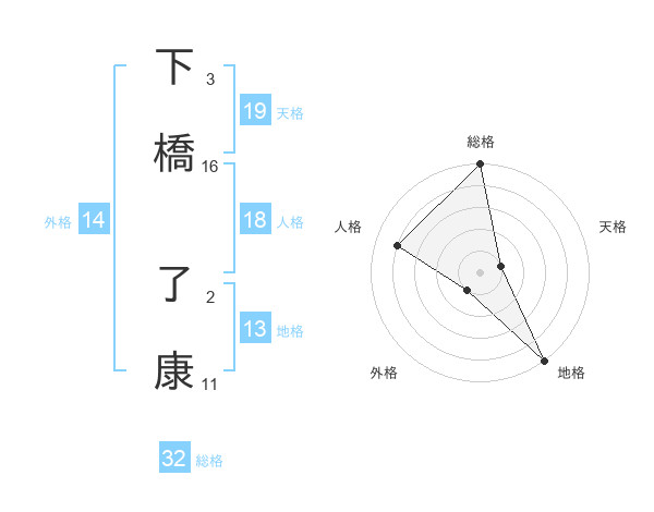下橋 了康さんの総格は32画の5点!