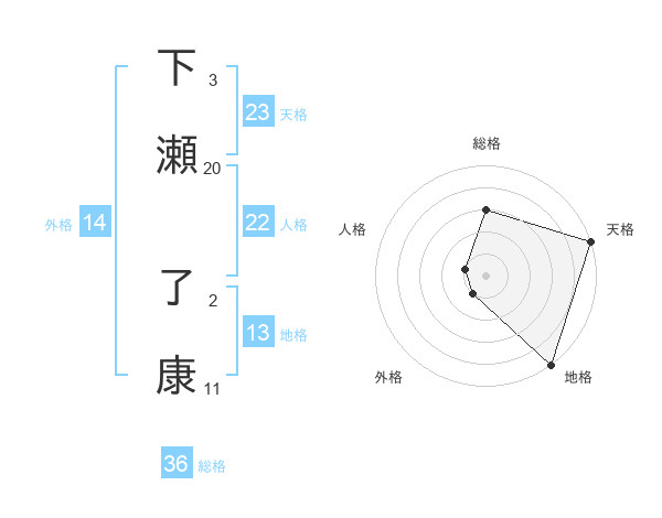 下瀬 了康さんを姓名の画数から五運を鑑定
