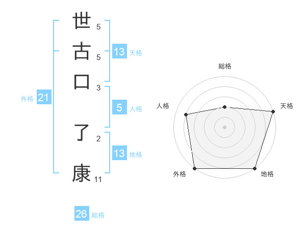 世古口 了康さんの天格は13画の5点!