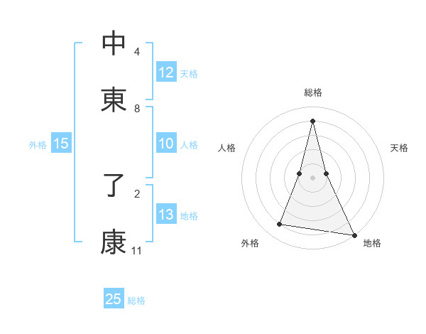 中東 了康さんの総格は25画の4点!