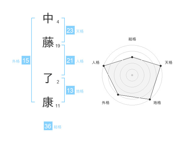 中藤 了康さんの天格は23画の5点!