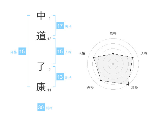 中道 了康さんの天格は17画の4点!