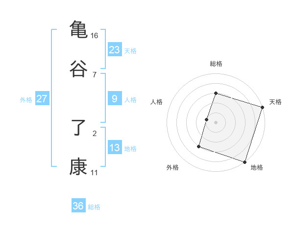 亀谷 了康さんの天格は23画の5点!