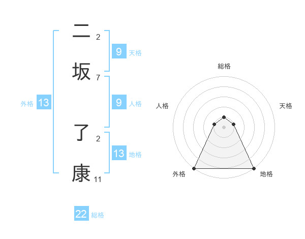 二坂 了康さんの外格は13画の5点!