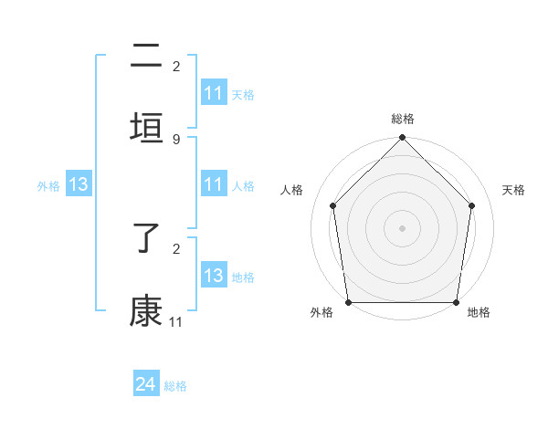 二垣 了康さんの外格は13画の5点!