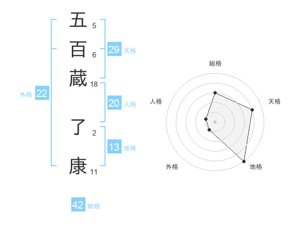 五百蔵 了康さんを姓名の画数から五運を鑑定