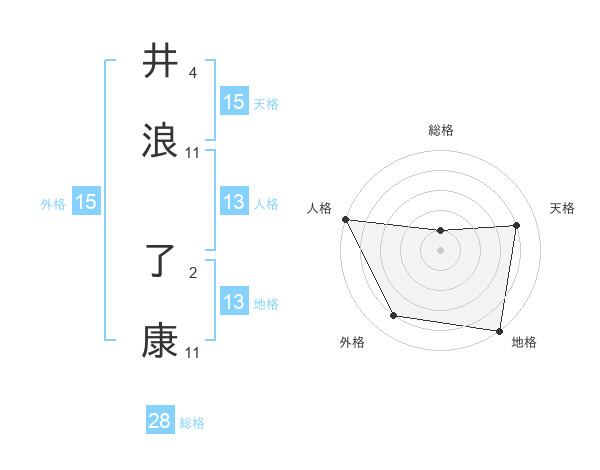 井浪 了康さんの天格は15画の4点!