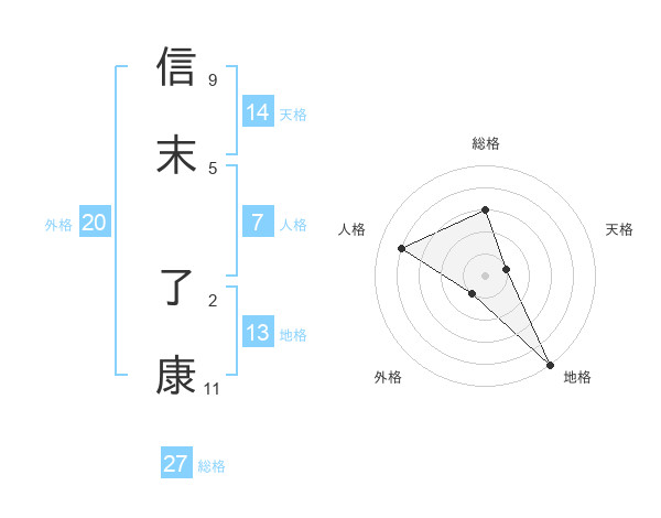 信末 了康さんを姓名の画数から五運を鑑定