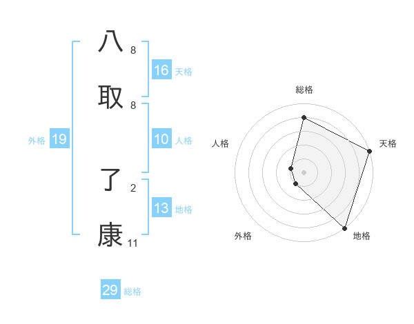 八取 了康さんの総格は29画の4点!