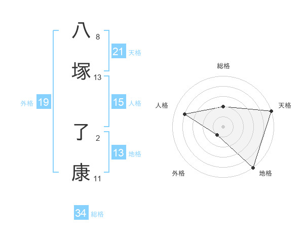 八塚 了康さんの天格は21画の5点!