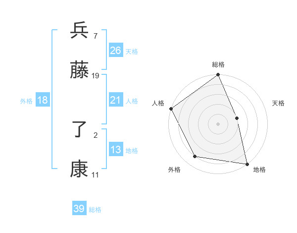 兵藤 了康さんの総格は39画の5点!
