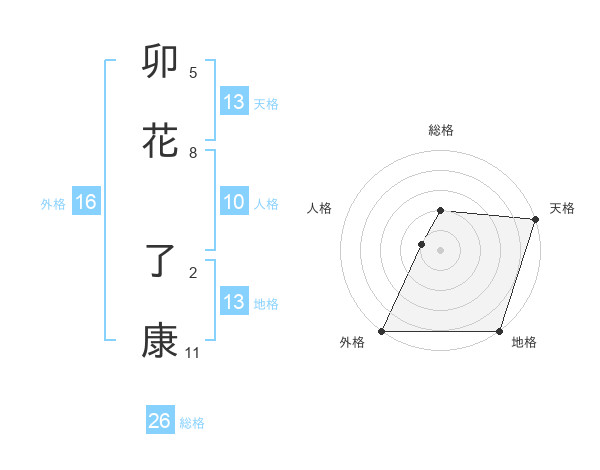 卯花 了康さんの総格は26画の2点!