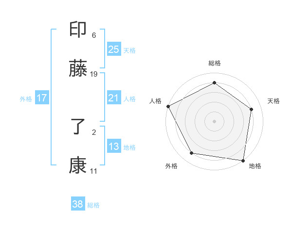 印藤 了康さんの総格は38画の4点!