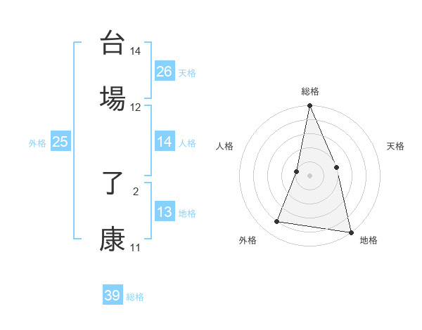 台場 了康さんの地格は13画の5点!
