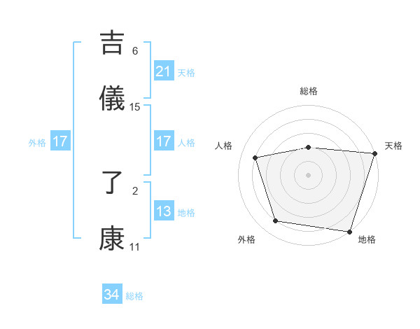 吉儀 了康さんの天格は21画の5点!