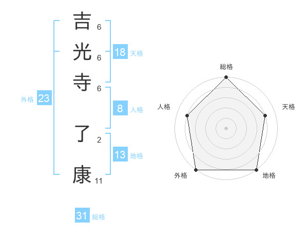 吉光寺 了康さんを姓名の画数から五運を鑑定